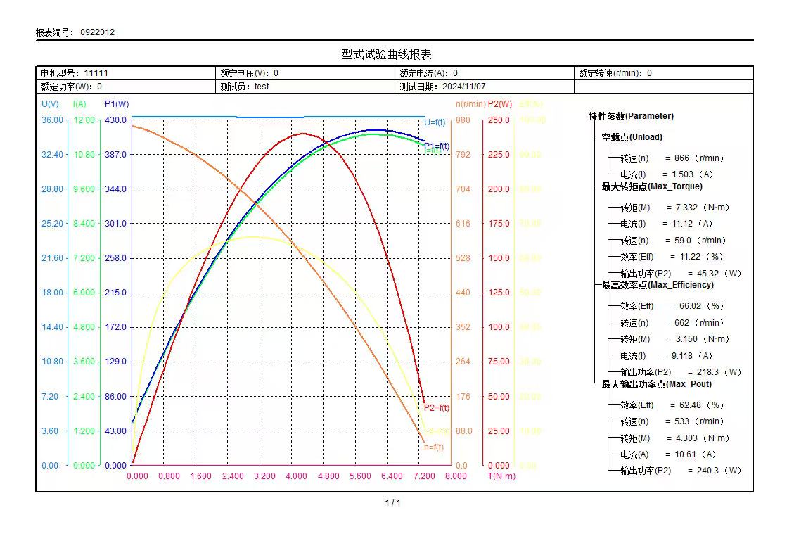 以下数据为样机在出厂前的严格型式试验记录。电机数据由廊坊丰富科技有限公司提供工厂直供验证。点击图片查看全图。